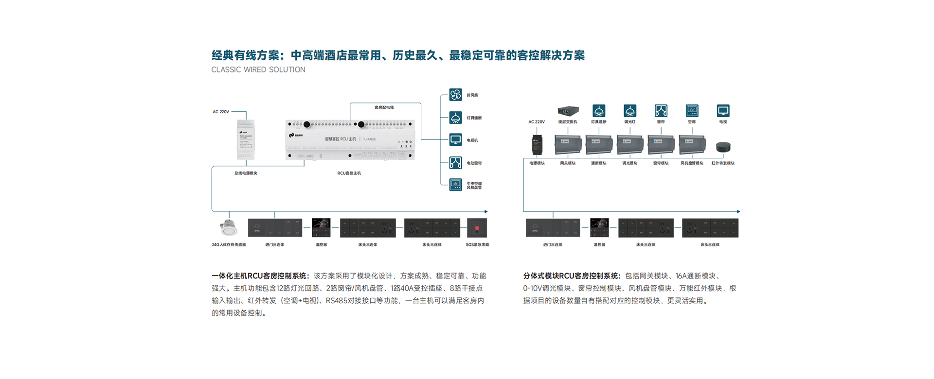 燈控、場景、調(diào)光、門顯、門磁、服務(wù)請求、無卡取電、溫控、紅外探測等
